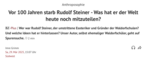 "Vor 100 Jahren starb Rudolf Steiner - Was hat er der Welt heute noch mitzuteilen?"